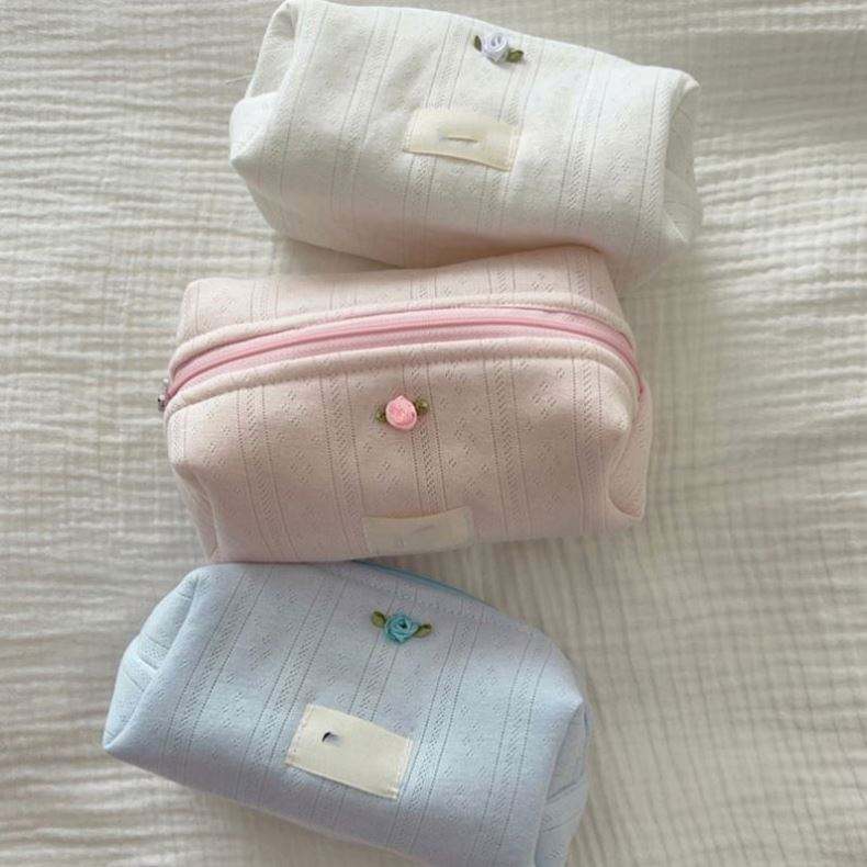 Ins Fashion Makeup Case Elegant Simplicity Sweet Floral Lipstick Bag Portable Large Capacity Earphone Cable Storage Bag
