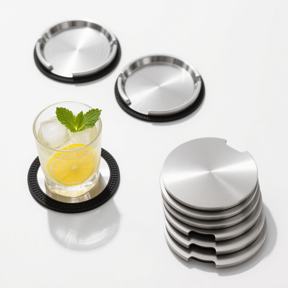 Ins High Quality Golden Flat Electropalted Stainless Steel Blank Custom Glossy Round Metal Coaster for Drink Coffee Bar Mat