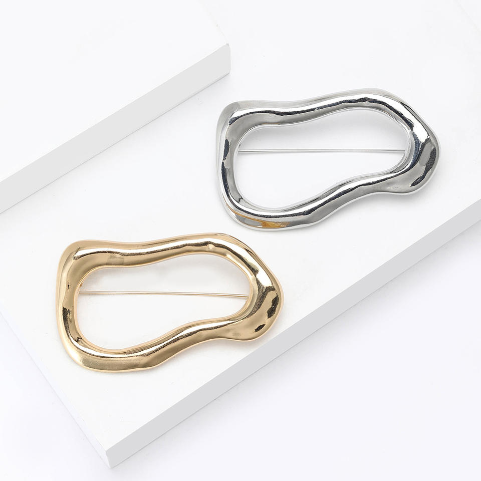 Ins Hot Selling Gold Plated Smooth Irregular Hoop Brooch Dual-Use Pin Alloy European American Style Wedding Fashion Jewelry for