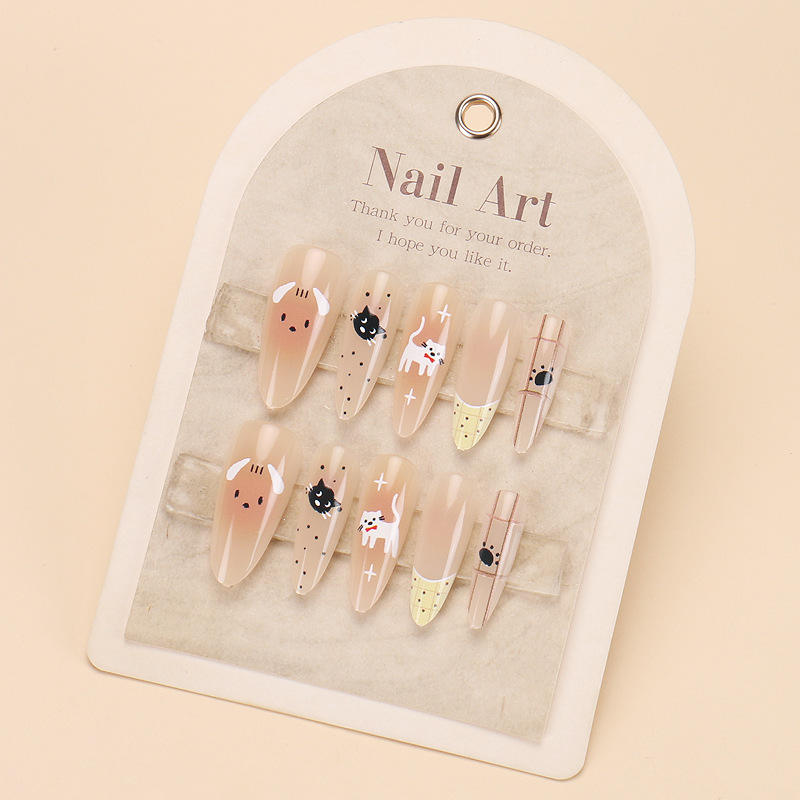 Ins Hot-Selling Wearable Nails Cartoon Gradient French Manicure Xiaohongshu Girl New Year Sweet Cool Style Nail Tips