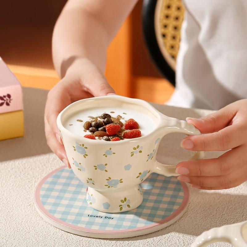 Ins Korean Small Flowers Ceramic Coffee Mugs Girl Heart Breakfast Gift Water Cup