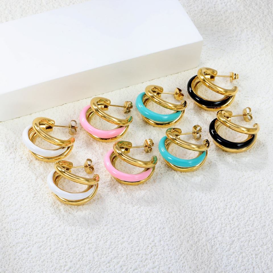 Ins Popular Multilayer C Shaped 18k Gold Plated Chunky Stainless Steel Jewelry Multicolor Enamel Hoop Earrings for Women