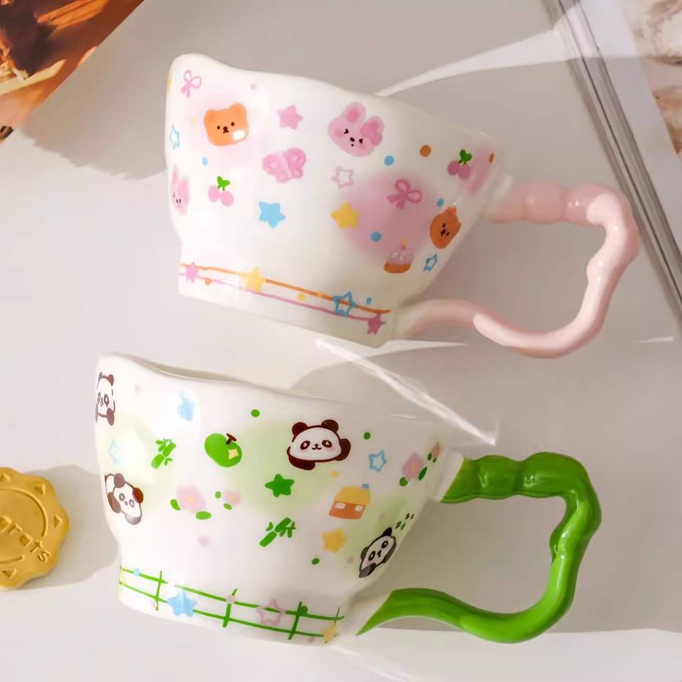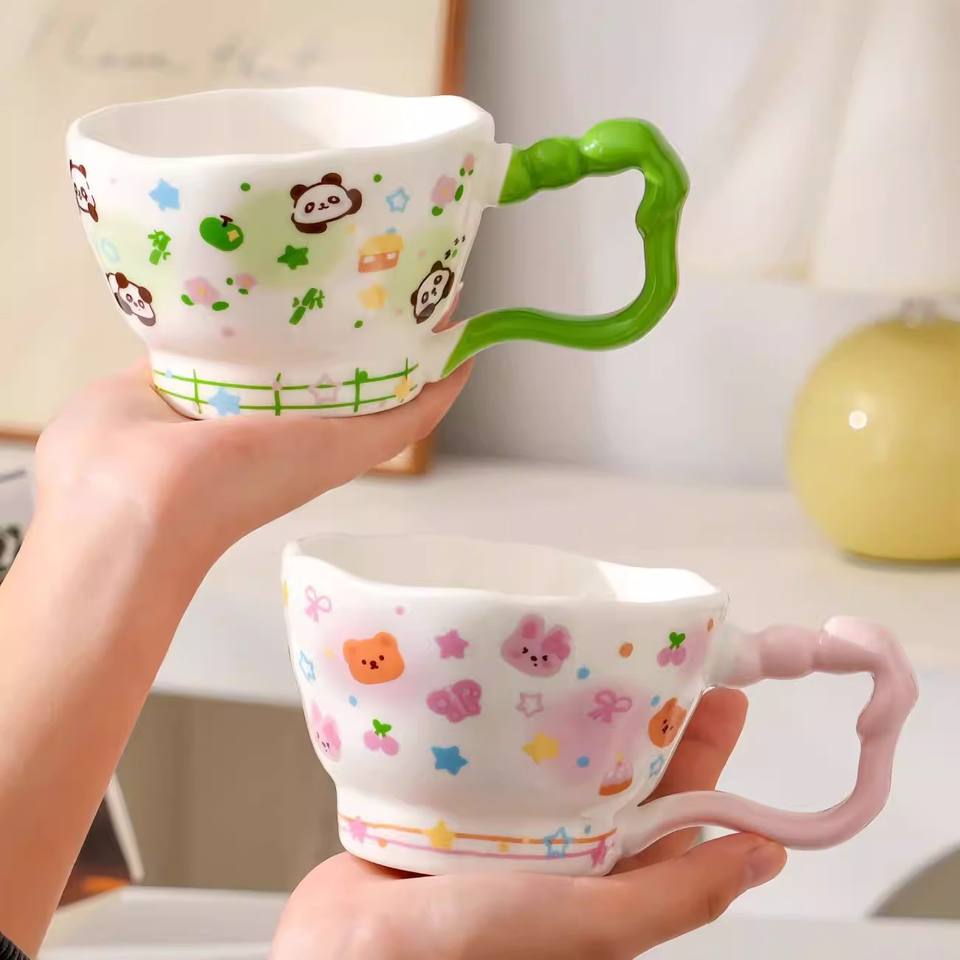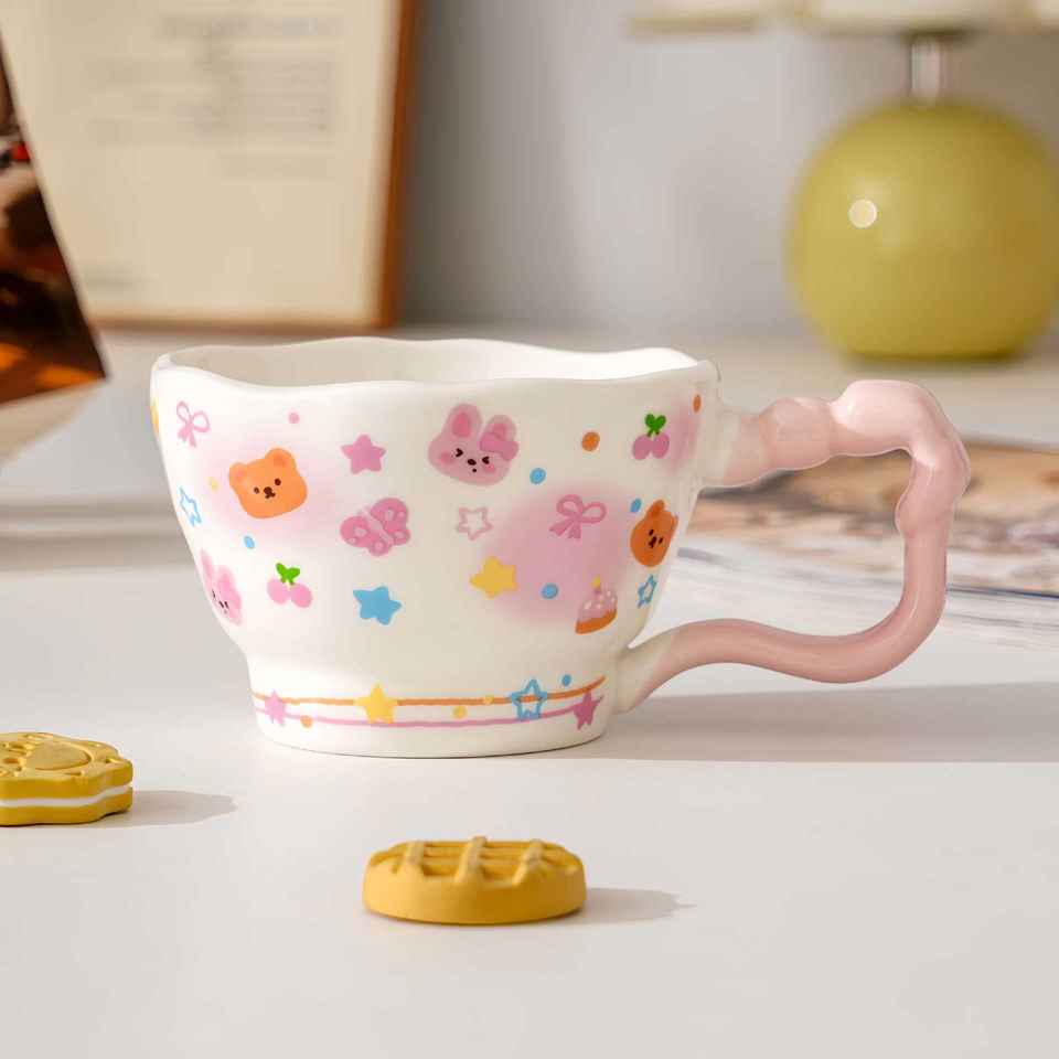 Ins Style Cute Cartoon Design Ceramic Mug Girl's Coffee & Milk Cup Household Breakfast Back to School Reusable High-Value Gift