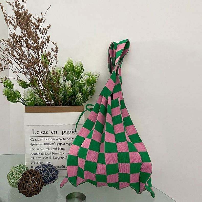 Ins Style Fold Design Bump Color Wool Knitted Shoulder Handbag Organ Shopping Bag