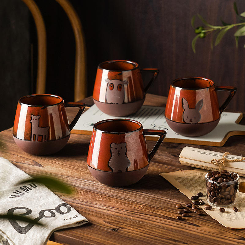 Ins Style Nordic Hand-painted Ceramic Mug 420ml Eco-Friendly Brown Creative Personality Water Cup Japanese Milk Coffee Cup Tea