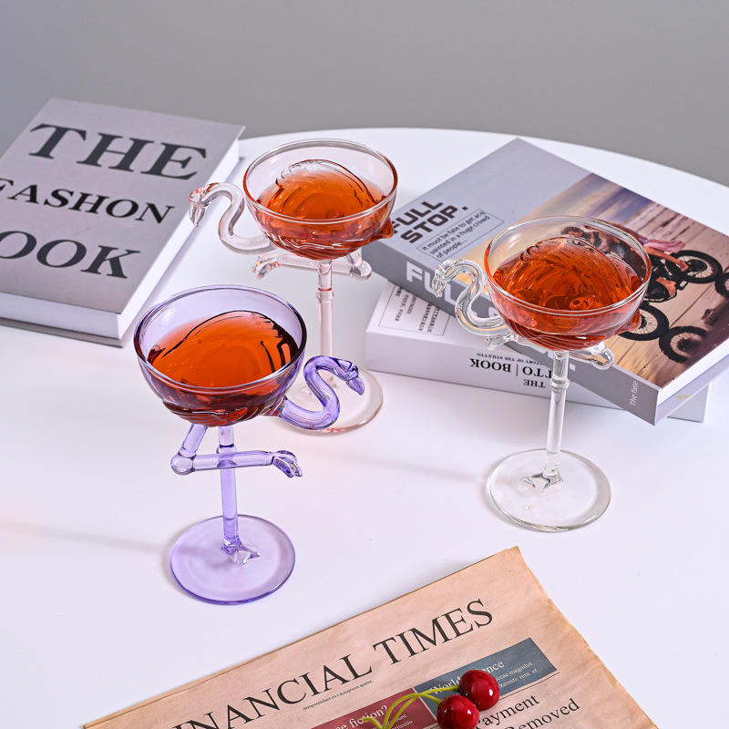 Ins-style Tall Cocktail Glass, Personalized Flamingo Glass Red Wine Glass, Dessert Salad Glass