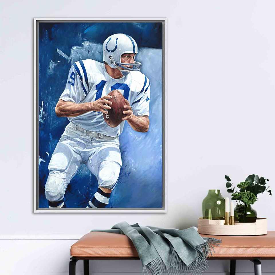 Inspirational Canvas Print: American Football Players Artwork for Man Cave,White Framed