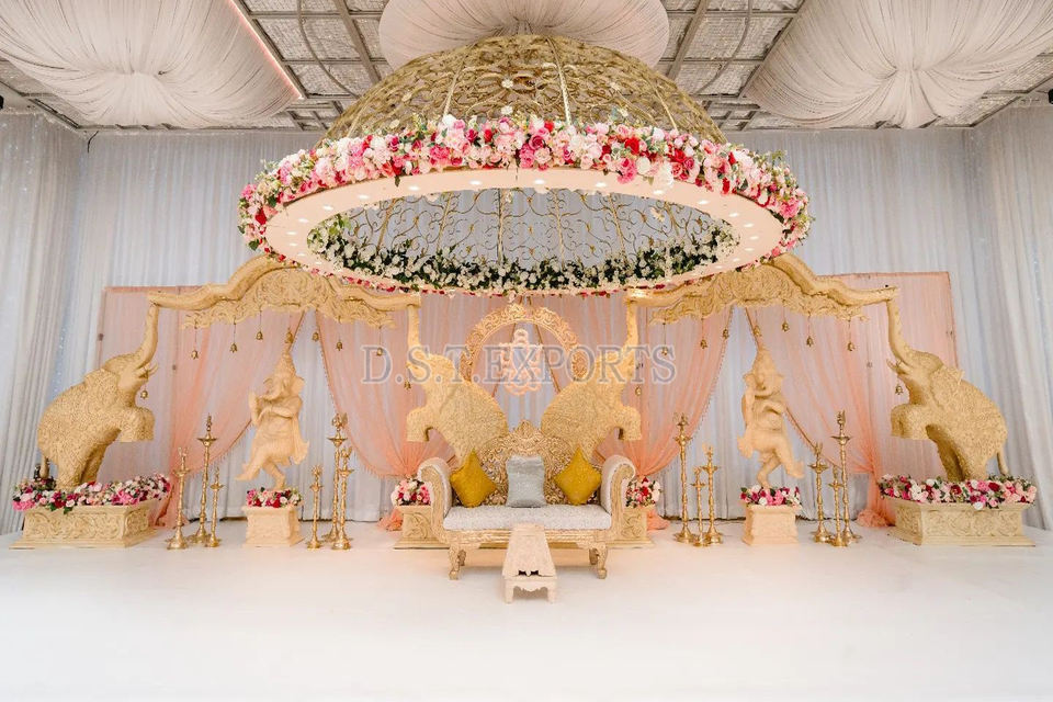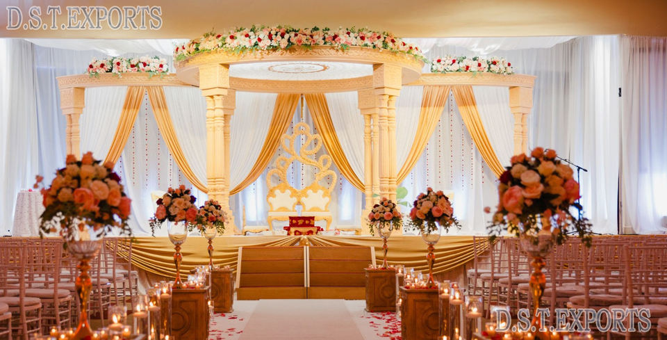 Inspirational Indian Wedding Wooden Ishani Mandap DST Exports Customized Maharaja Style Durable Carved Pillars Round Mandapam Uk