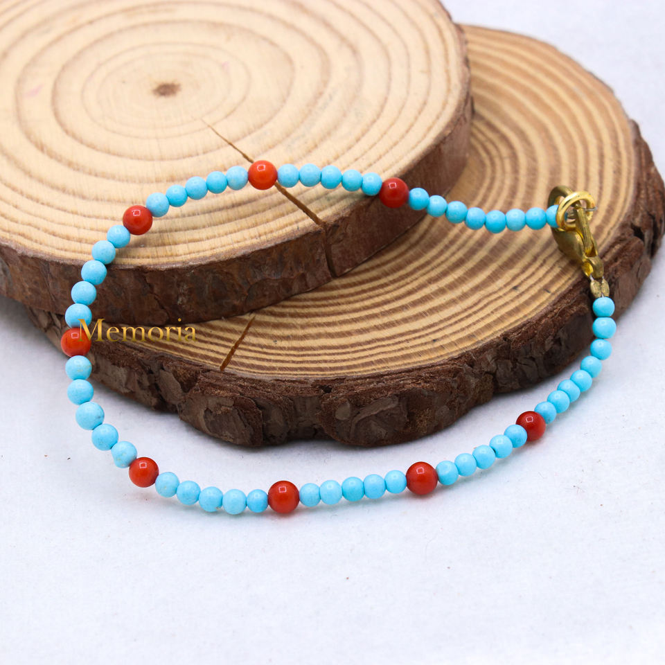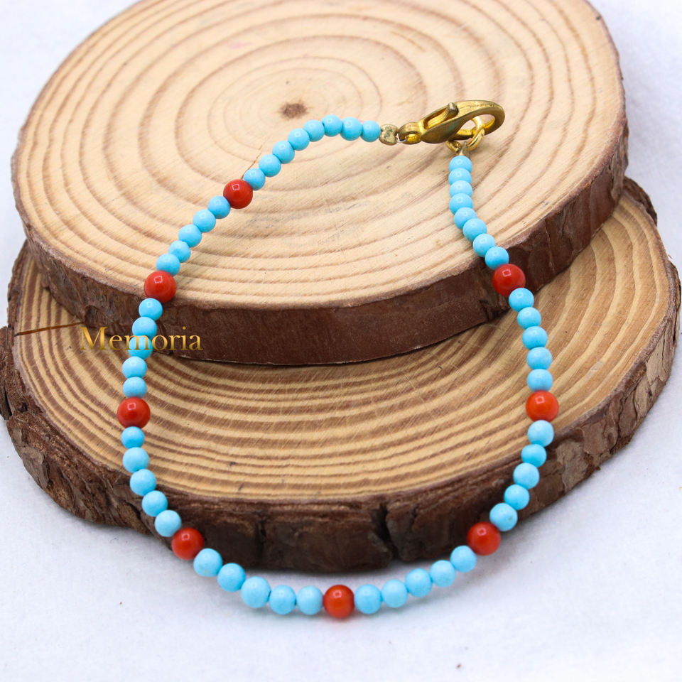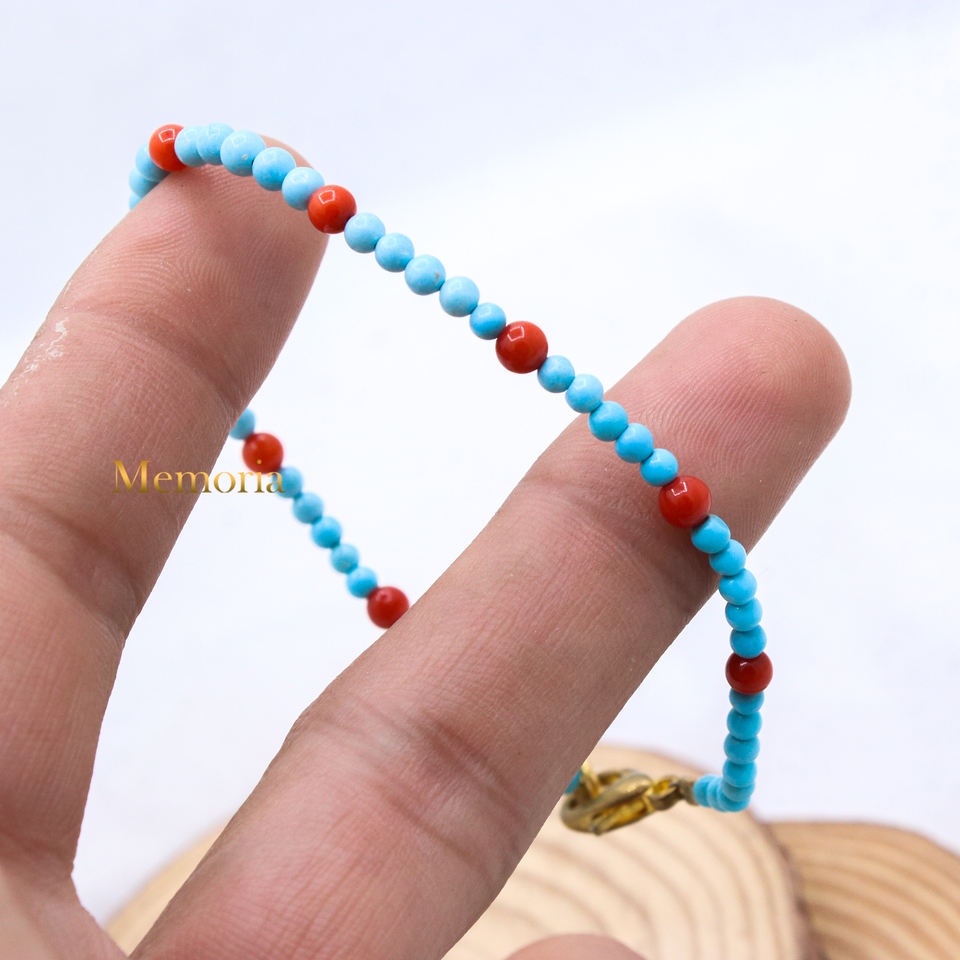 Item Name:Turquoise & Coral Stratchable Bracelets