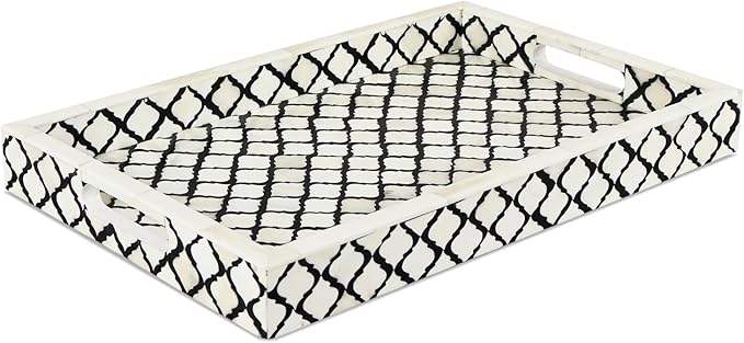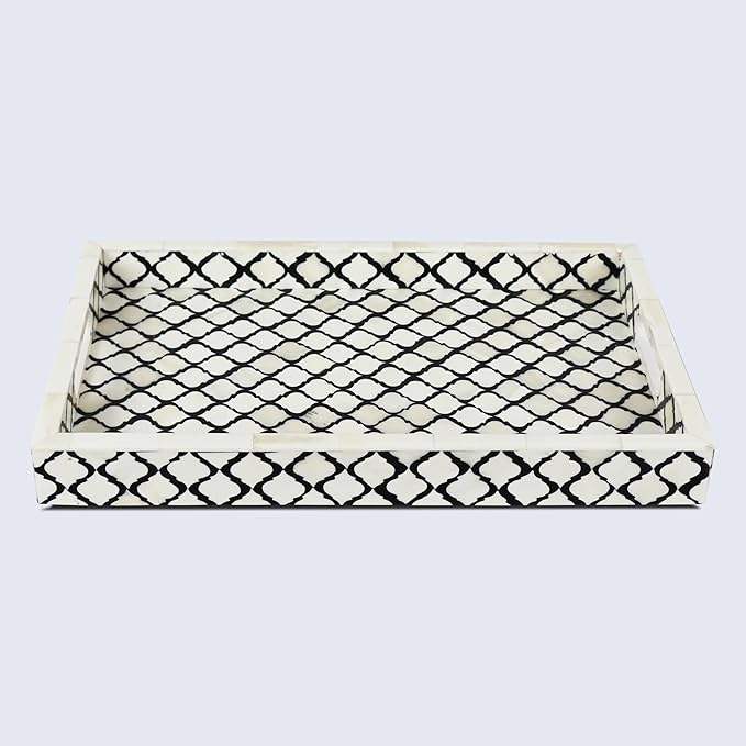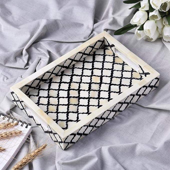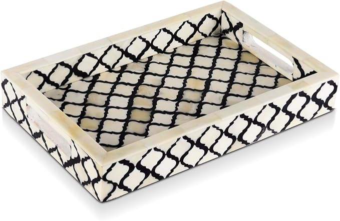 Inspired by Unique Patterns Bone Inlay Serving Tray with Multipurpose Ottoman Tray for Decorative Christmas Gifts