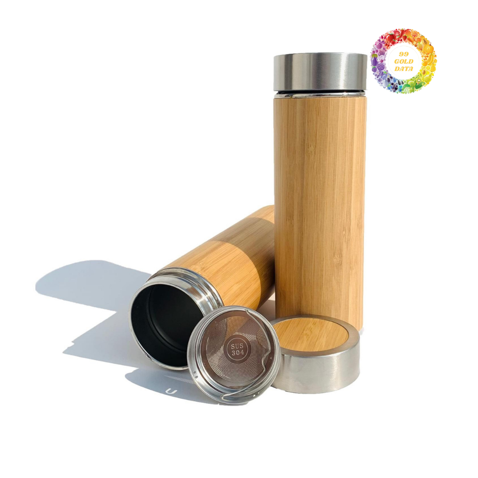 Insulated Bamboo Flask, Natural Bamboo Thermos Bottle with Tea Infuser, Eco-Friendly Bamboo Thermos Bottle To Hold Water