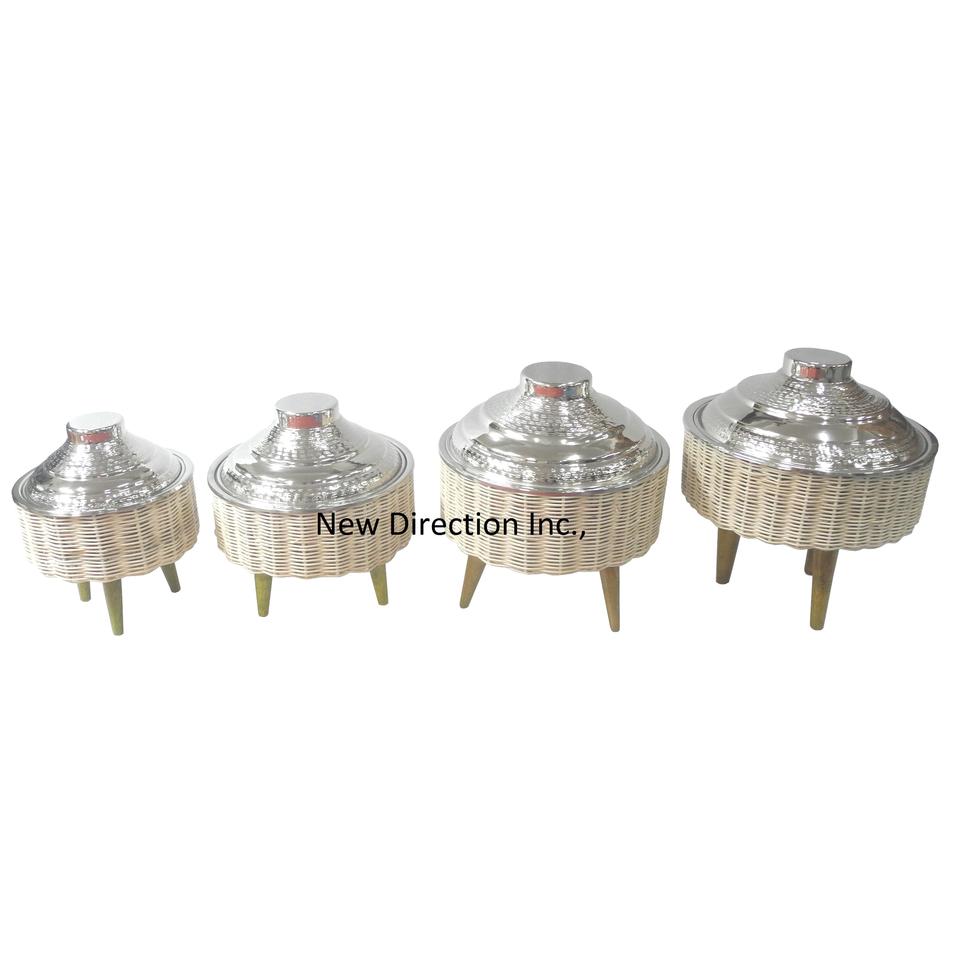 Insulated Double Wall Casseroles Serving Bamboo Hot Pots Hotel Restaurant Food Supplies With Bamboo Wooden Basket