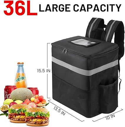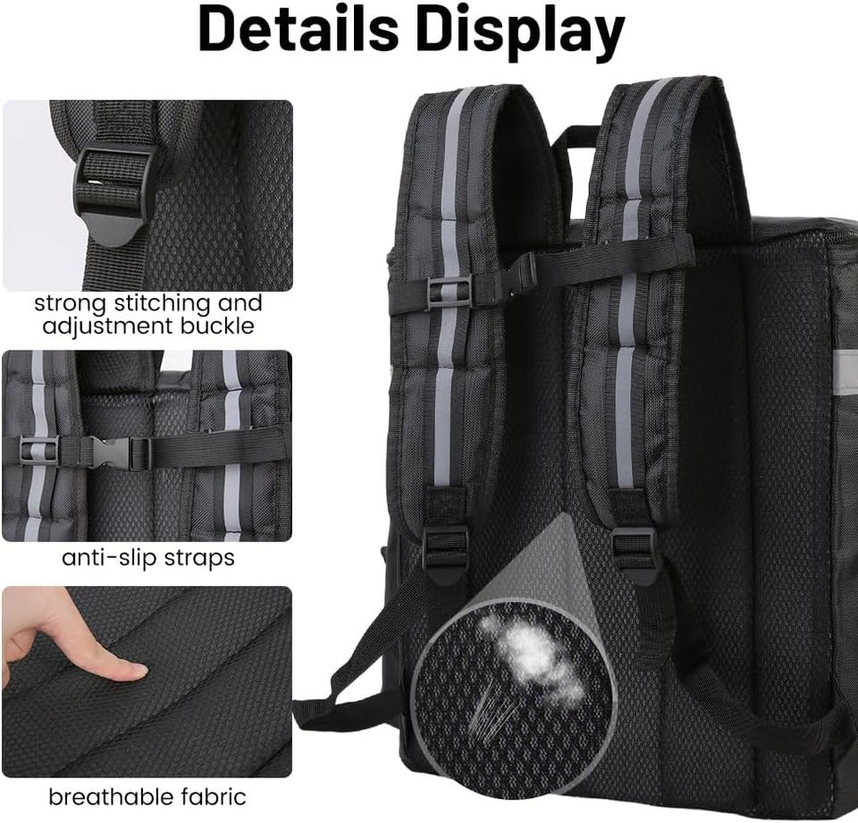 Insulated Food Delivery Backpack with 2 Cup Holder Cooler Bags for Hot Cold Food for Bike Insulated Reusable Grocery Shopping