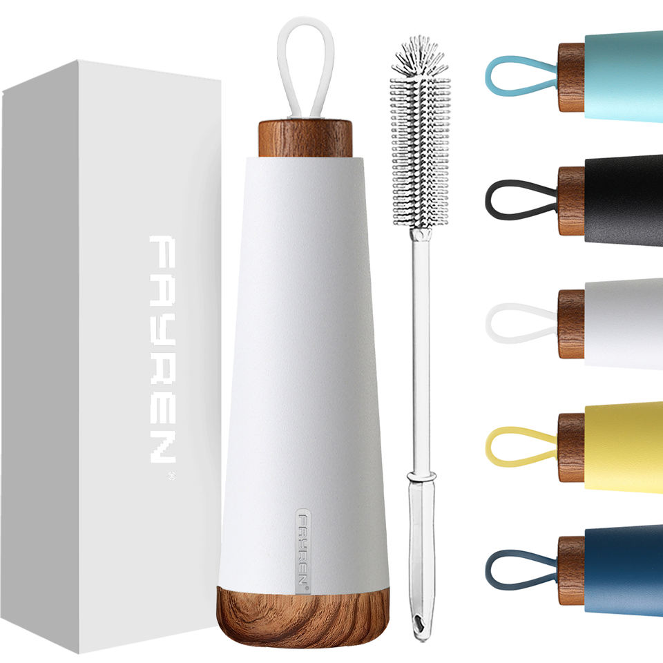 Insulated Water Bottle Double Wall Stainless Steel Cute and Skinny Design Water Bottle with Wooden Lid 500ml with Logo