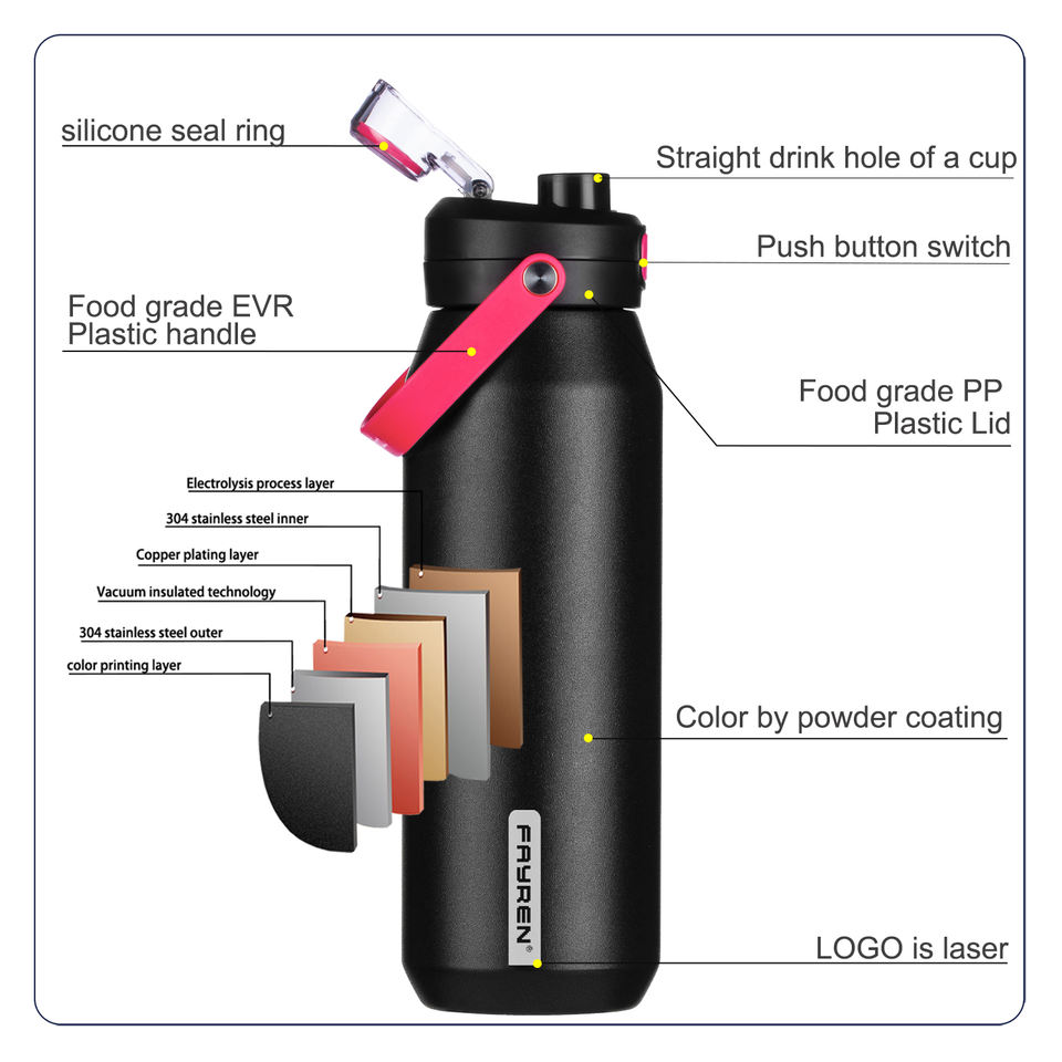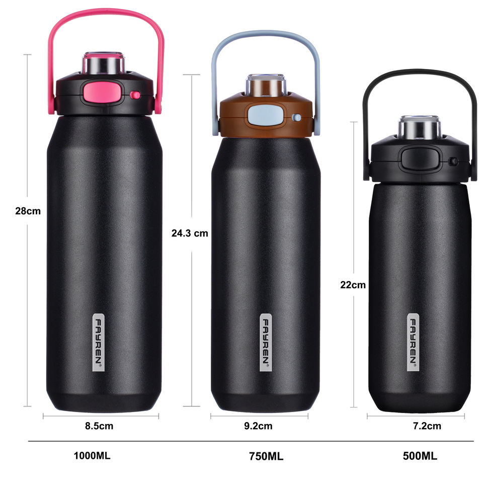Insulated Water Bottle with Carry Handle Leakproof Stainless Steel Water Bottles for Sports Travel Work School