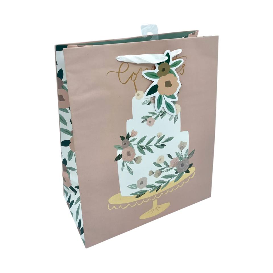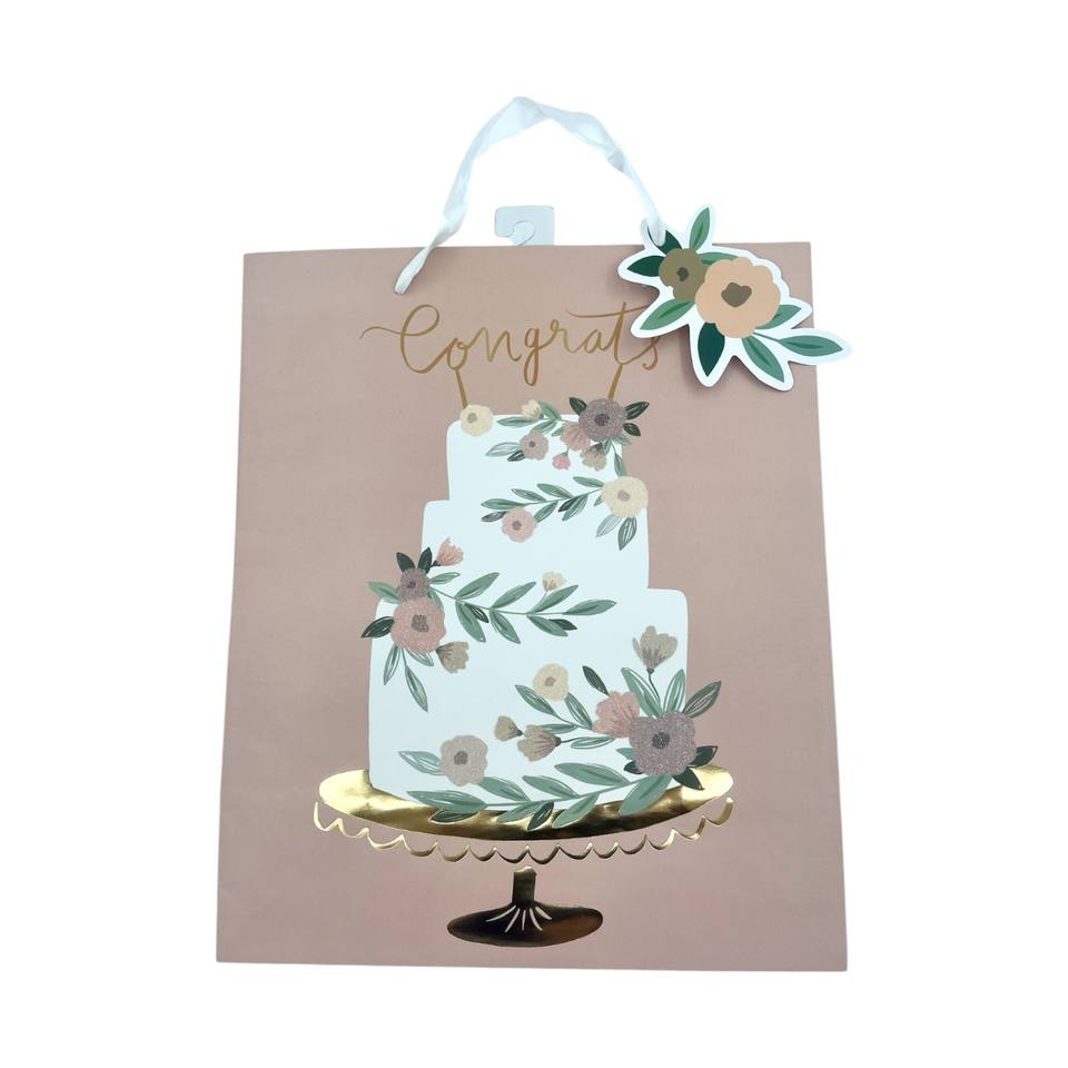 IntBOX Elegant Wedding Cake Design Floral Accents Gift Bag Soft Pink Tone Gold Stand Romantic Celebration Style Eco-Friendly