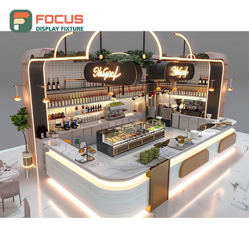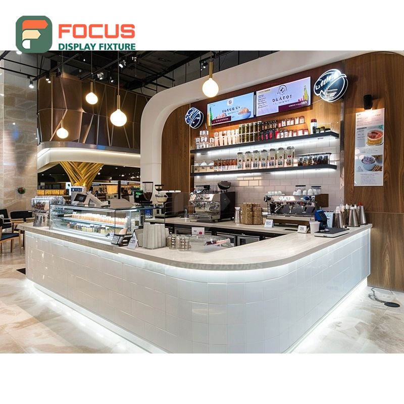 Integrated Coffee Display Rack Syrup Bottle Shelf White Oak Cafe Merchandise Display Rack