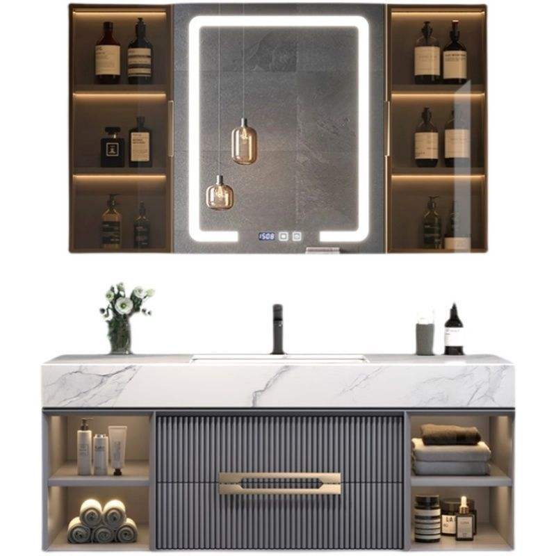 Integrated slab bathroom vanity unit, modern minimalist solid wood light luxury washbasin and toilet vanity cabinet.