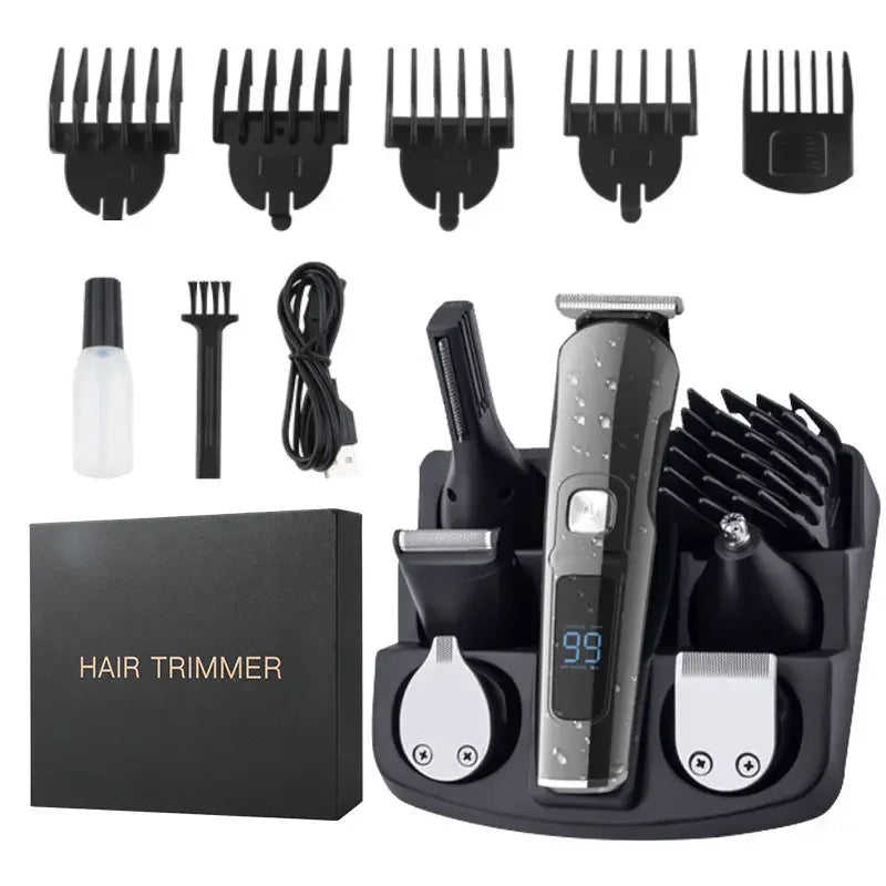 Intelligent 6 in 1 Electric Hair & Body Trimmer USB Washable Nose & Ear Beard Shaver for Men Barber Cutting Set