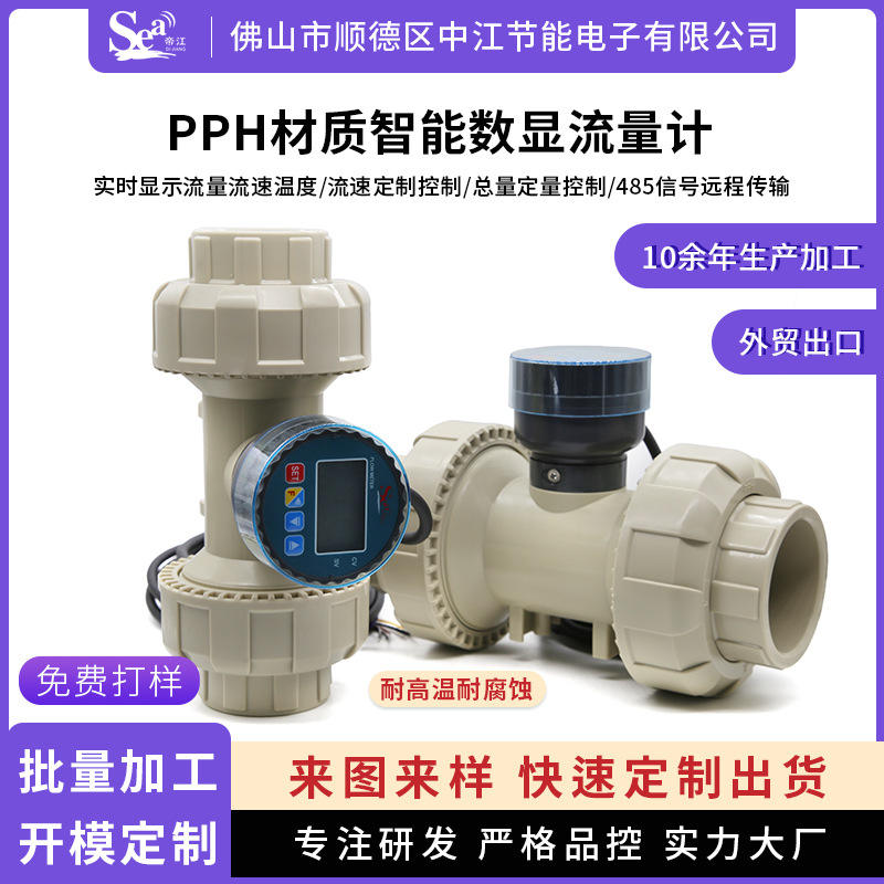 Intelligent Digital Display Water Flow Meter Large Diameter Liquid Pipeline Water Flow Sensor PPH Acid Alkali Resistant 485