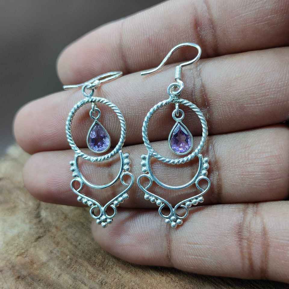 Intense Faceted Amethyst 925 Silver Earrings Wedding and Party Wear Elegant 925 Silver Faceted Amethyst Jewelry Perfect Gift