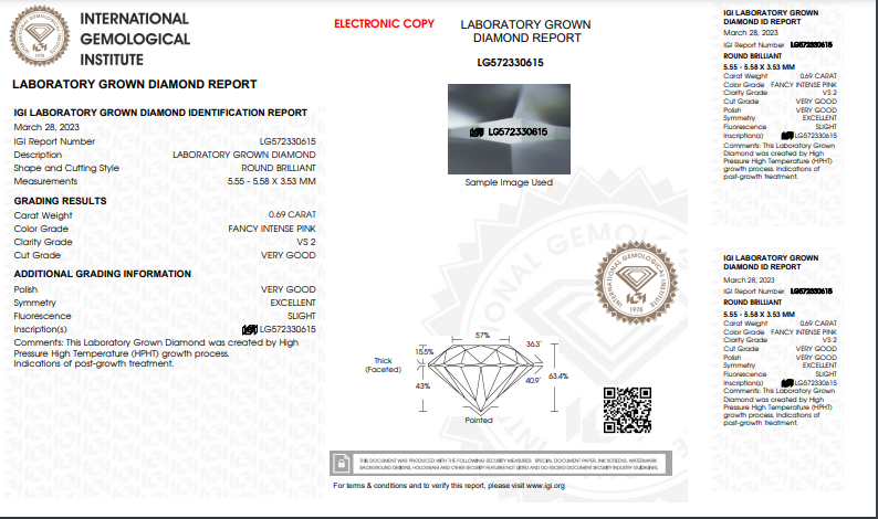 Intense Pink Color VS2 Clarity Size 0.69Ct Polished Labgrown Diamond Round Shape HPHT-CVD Diamond Jewelry Loose Diamond