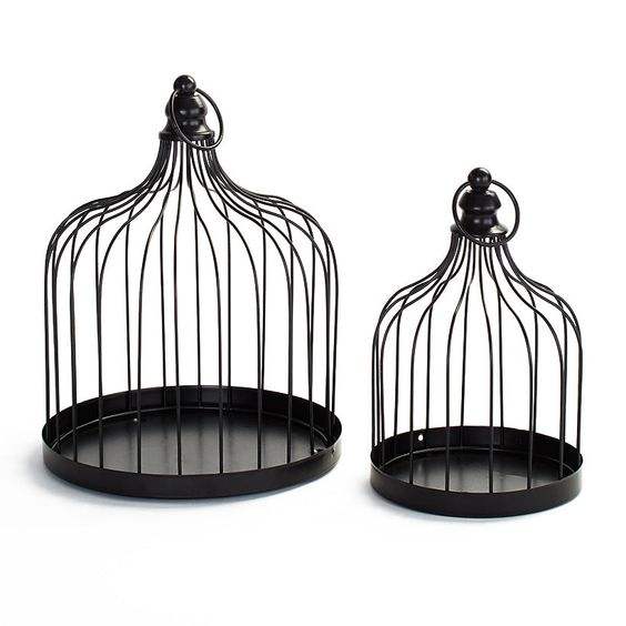 Interactive Bird Cages Set of 2 Gold & Black Colour Metal Indoor Decorative Hanging Bird Cage Offer Soothing Chimes or Melodies