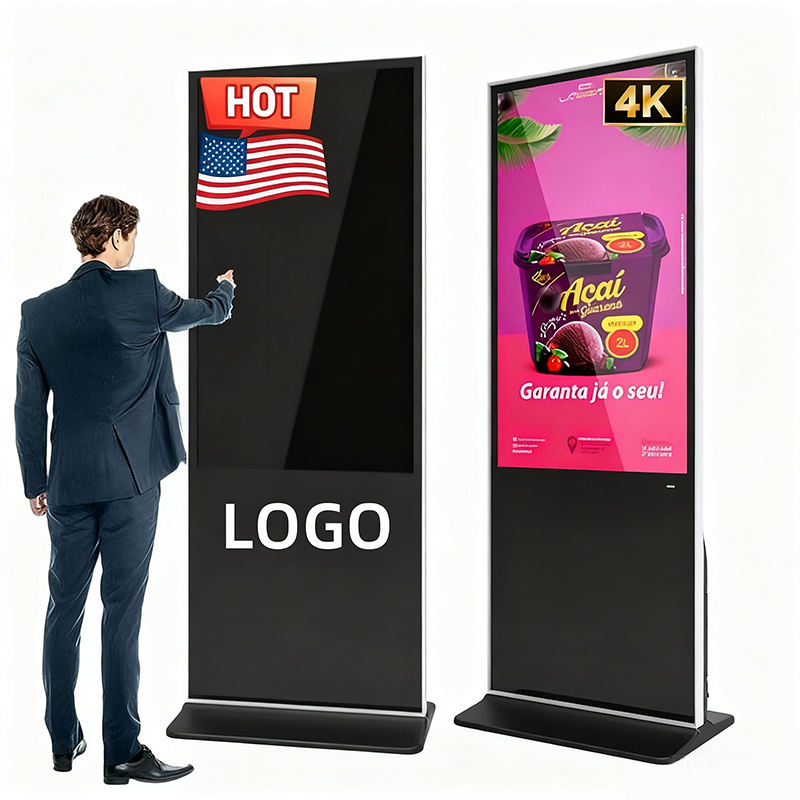 Interactive Indoor Touch Screen LCD Digital Signage Kiosk Floor Stand Advertising Display Board for Restaurant Bank Animation