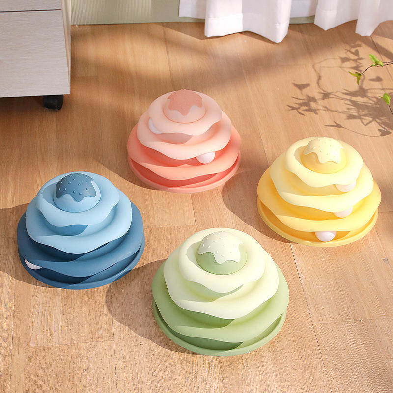 Interactive Plastic Cat Toy Ice Cream Track Chase Disc Tickle Self-Entertainment Artifact for Relieving Boredom