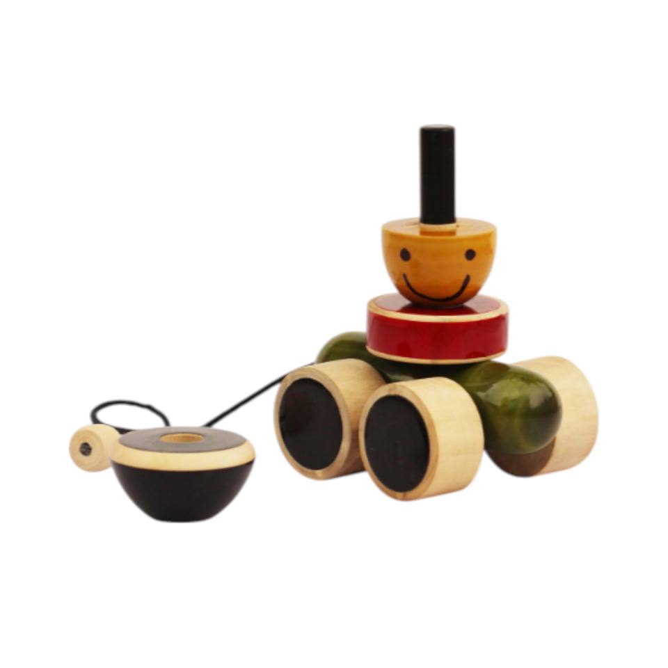Components:Wooden Base Stick with Colored Stack Parts and Face Top