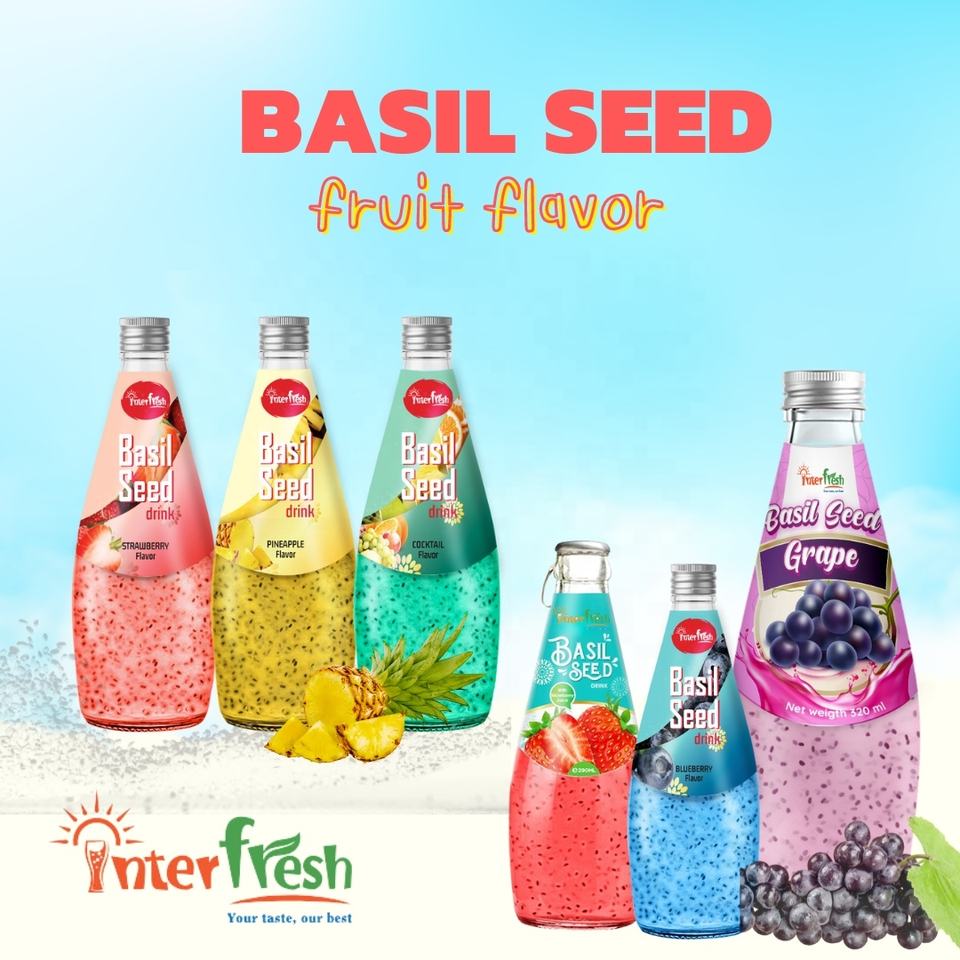 Interfresh Vietnam Basil Seed Drink 290ml Glass Bottle HALAL Certified Healthy Beverage Malaysia Export Supply