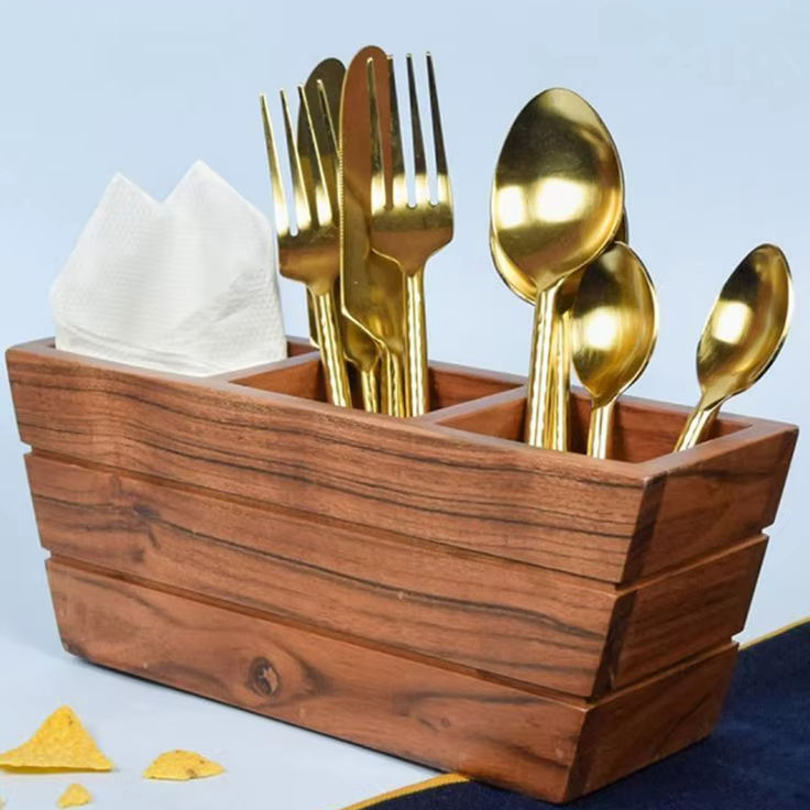 Interior Decor Wooden Cutlery Holder Stylish Handcrafted Organizer For Kitchen Table Utensils Forks Knives Spoons