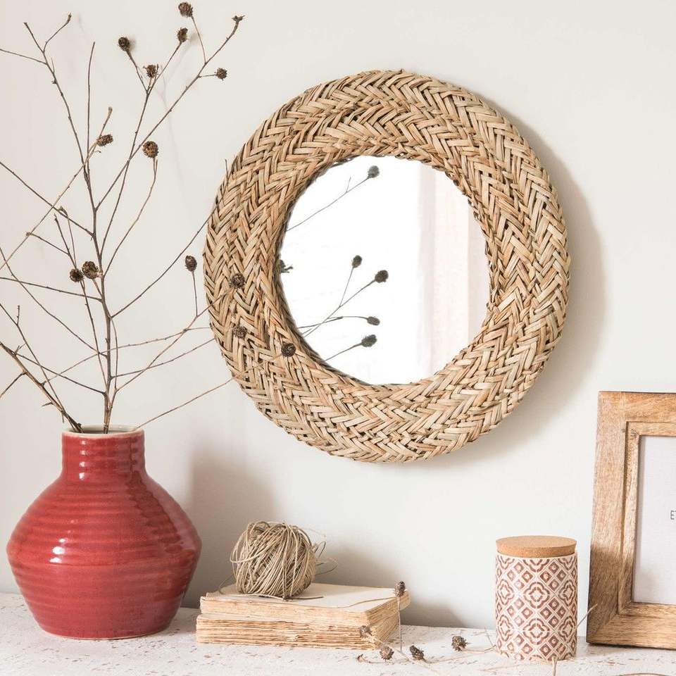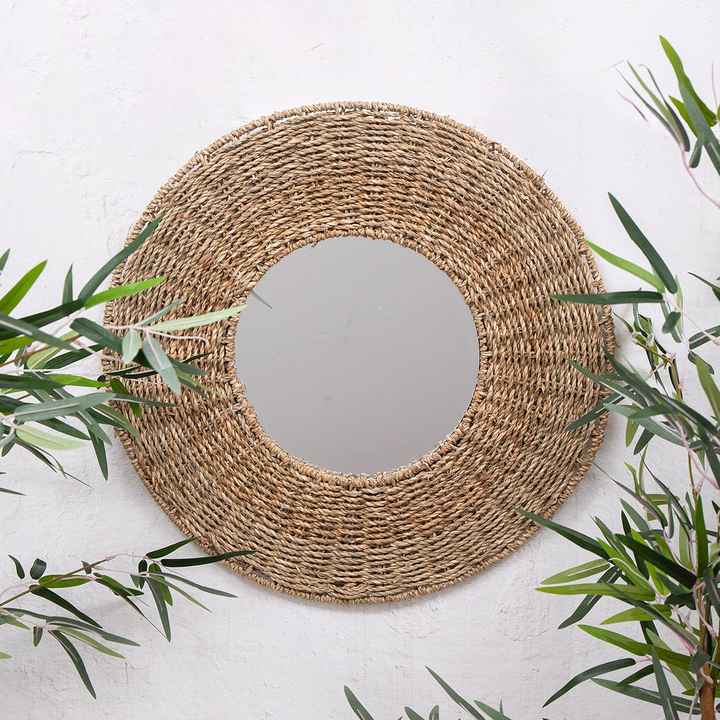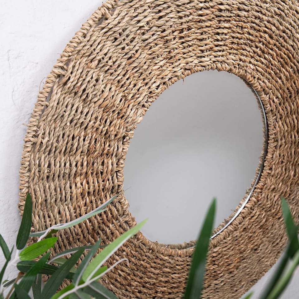 Interior furniture accessories beauty salon & shop wall mounted seagrass mirror natural grass round mirrors
