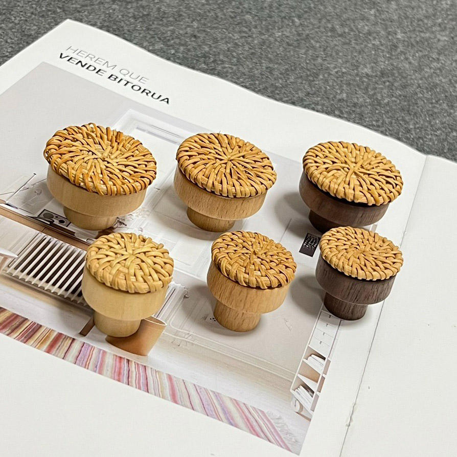 Interior furniture accessories natural rattan drawer knob modern wicker handle knobs for shower cabinet doors