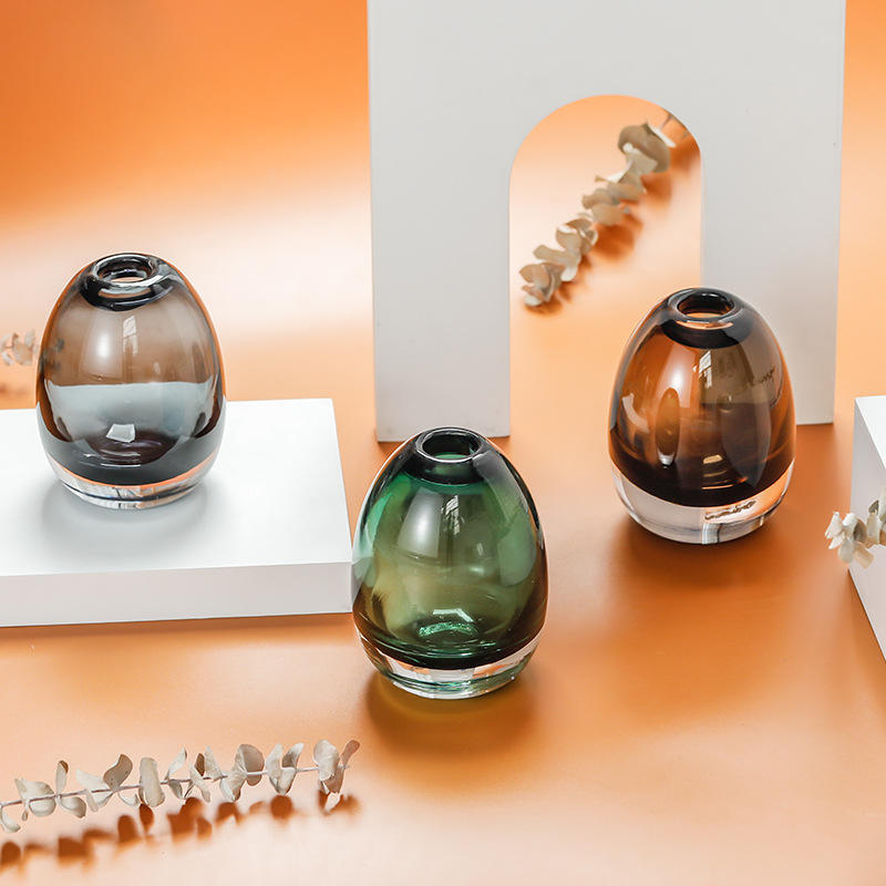 Elegant D20xH30cm Gray Glass Vase Handmade Crystal Flower Vases for Home Decor Mini Large for Living Wedding Hydroponic Design