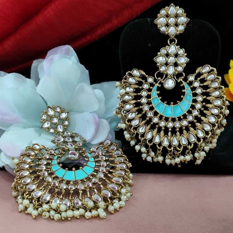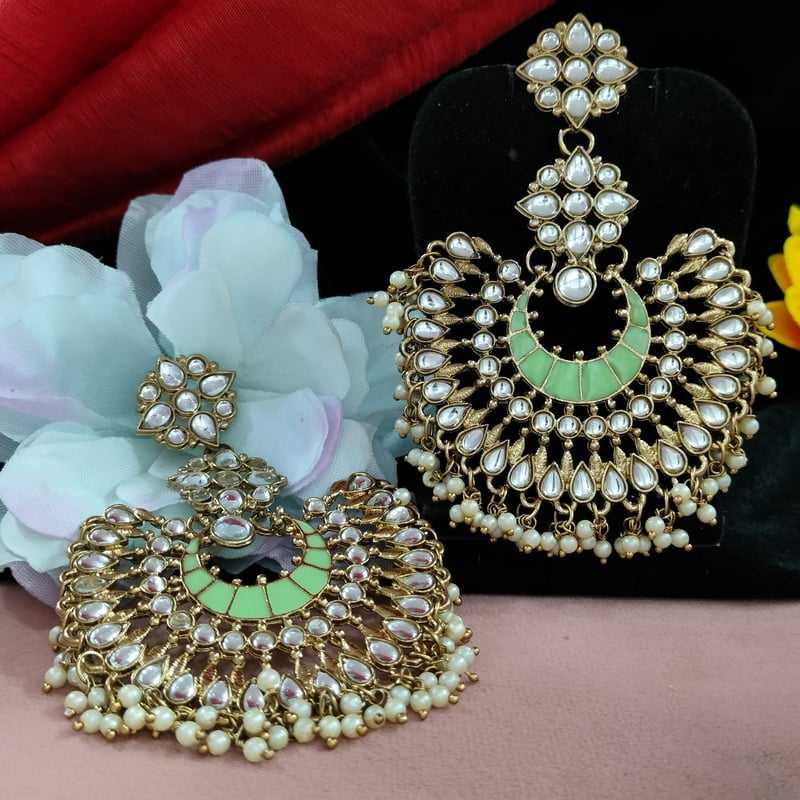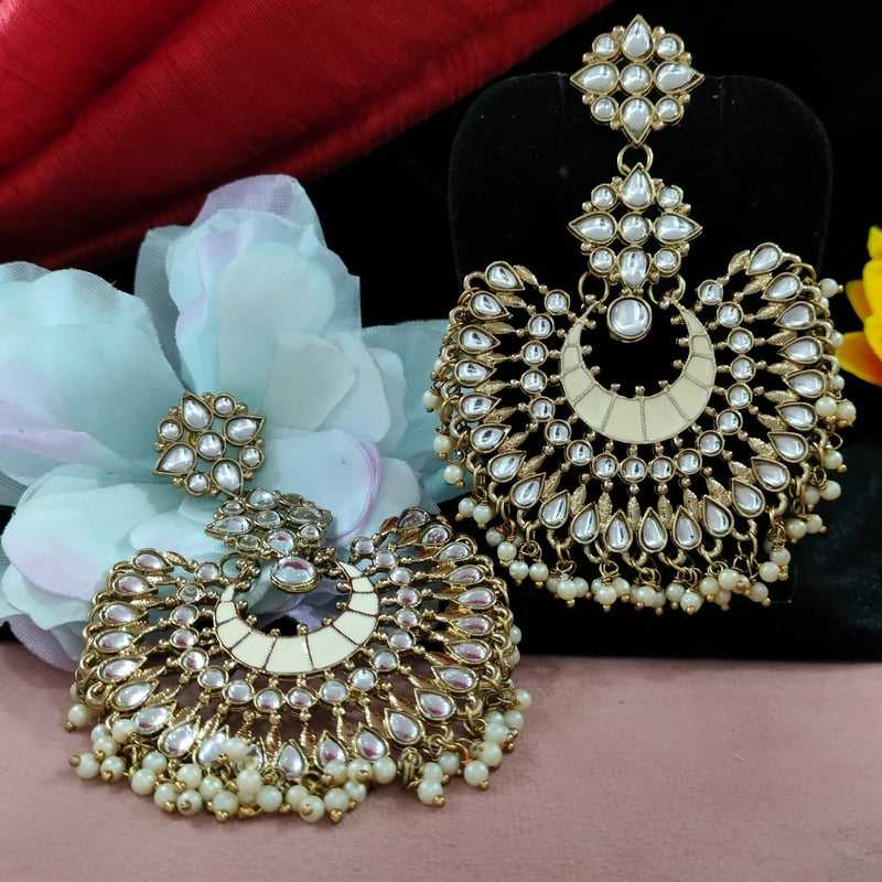 Intricate Kundan and Meenakari Fusion Earrings Beautifully Complemented by Hanging Pearls and Vibrant Work