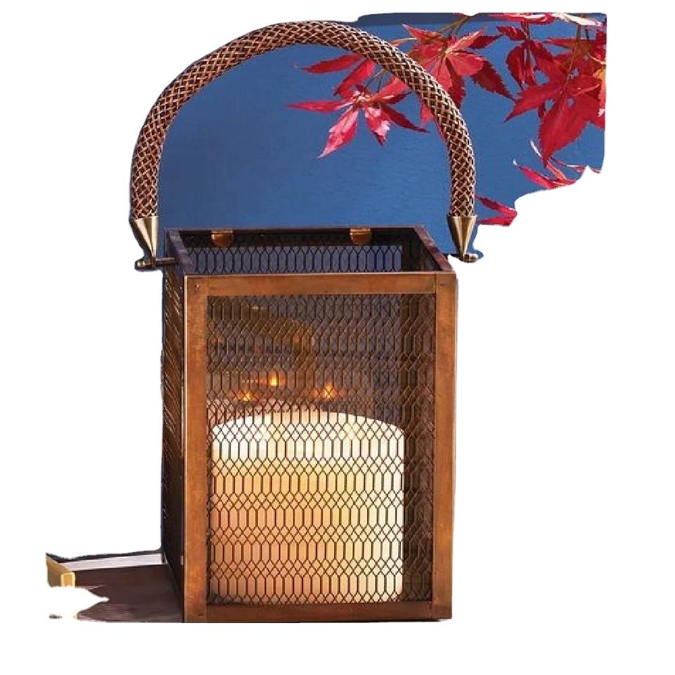 Modern Metal Lantern Featuring Woven Rope Handle Perfect For Stylish Home And Garden Ambiance