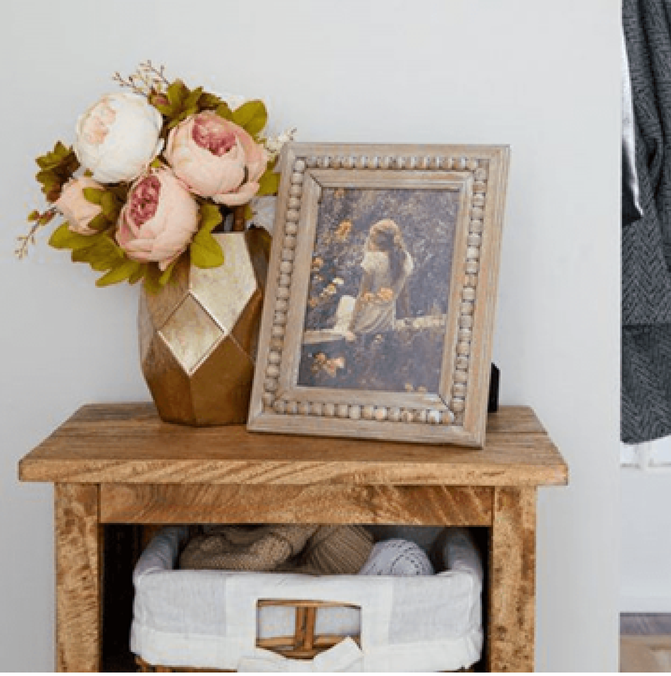 Intricately carved antique gold touch, vintage style photo frame with floral scrollwork for classic decor in India at low prices