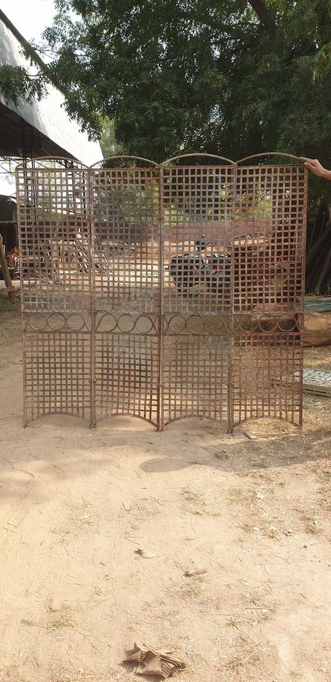 Handmade Intricately Carved Iron Folding Screen Panel Large Industrial Style Room Divider for Living Room Bathroom Outdoor Use