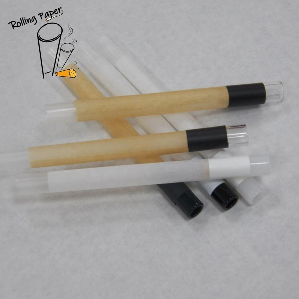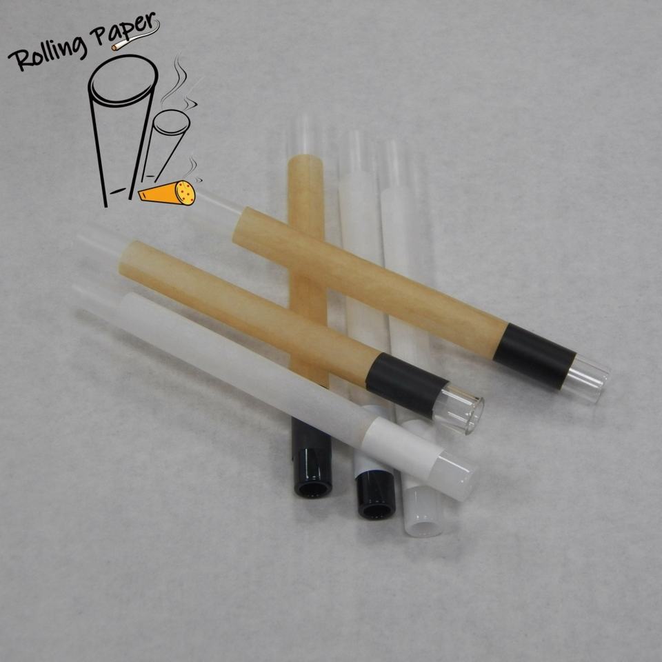 Inventory unbleached cigarette paper customized transparent glass mouth bleached smoking roll paper tube customized logo
