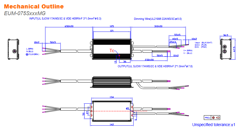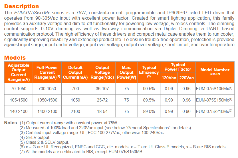 Inventronics EUM-075S210MG 0-10V Dimming Input AC90-305V 10KV Lightning Protection Waterproof AC-DC 75W Led Driver CE Certified