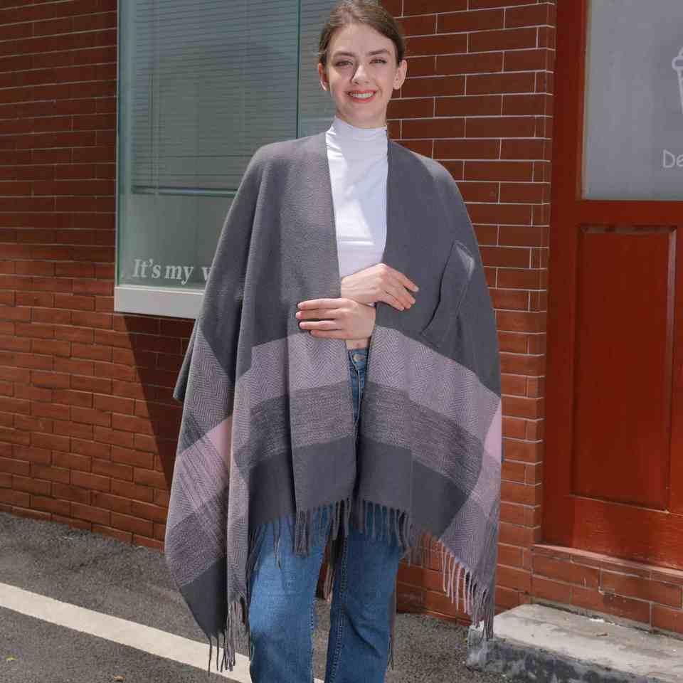 Inverness Women's Jacquard Leaf Argyle Pattern Striped Strap Warm Cotton Imitation Cashmere Shawl