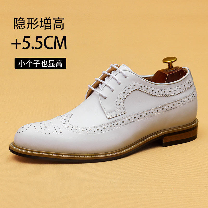 Invisible heightening shoes for the groom in white leather. Men's genuine leather business formal brogue shoes.