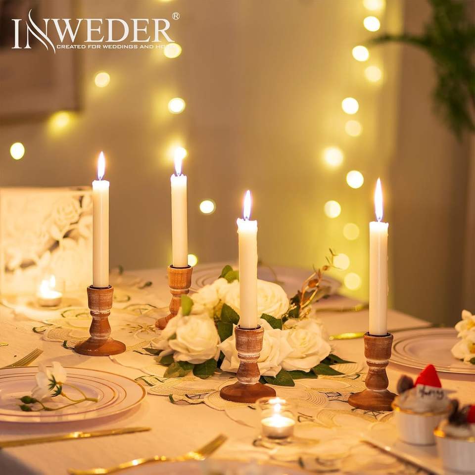 Inweder Set of 10 Rustic Wood Taper Candle Holders for Weddings and Table Centerpiece for Candlesticks