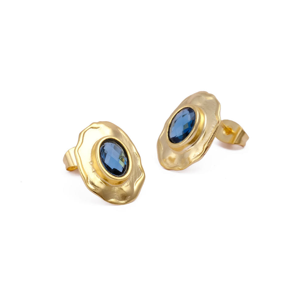 Iolite Hydro Quartz Stud Earrings Trendy Wholesale Gold Plating Bezel Set Oval Shape with Hammered Texture Made of Brass