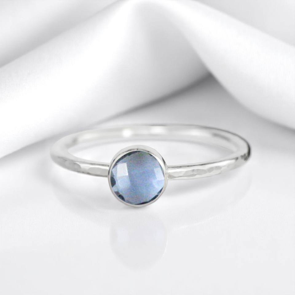 Iolite Quartz Hammered Band Round Faceted Gemstone Ring 925 Sterling Silver Ring Jewelry for Women