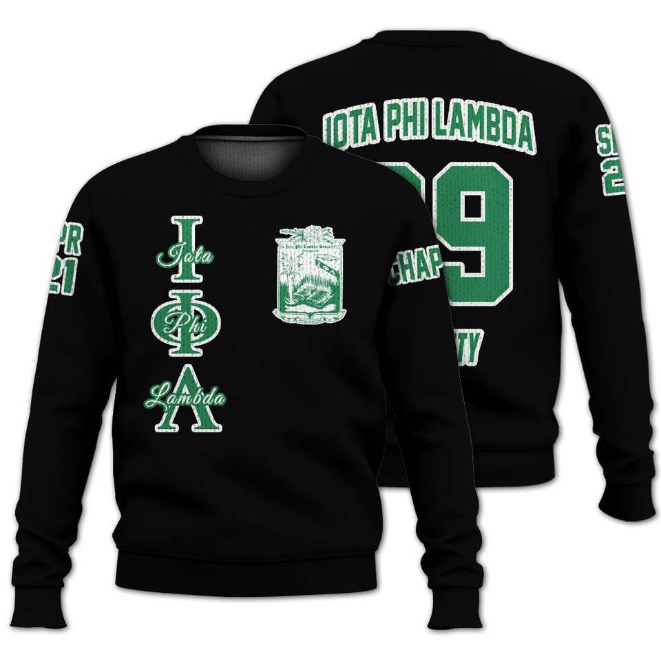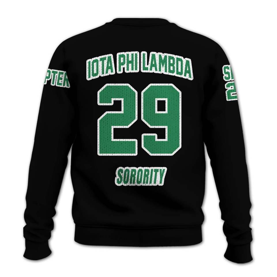 Iota Phi Lambda Custom Personalized Black Varsity Jacket Iota Phi Lambda Sorority Knitted Sweater
