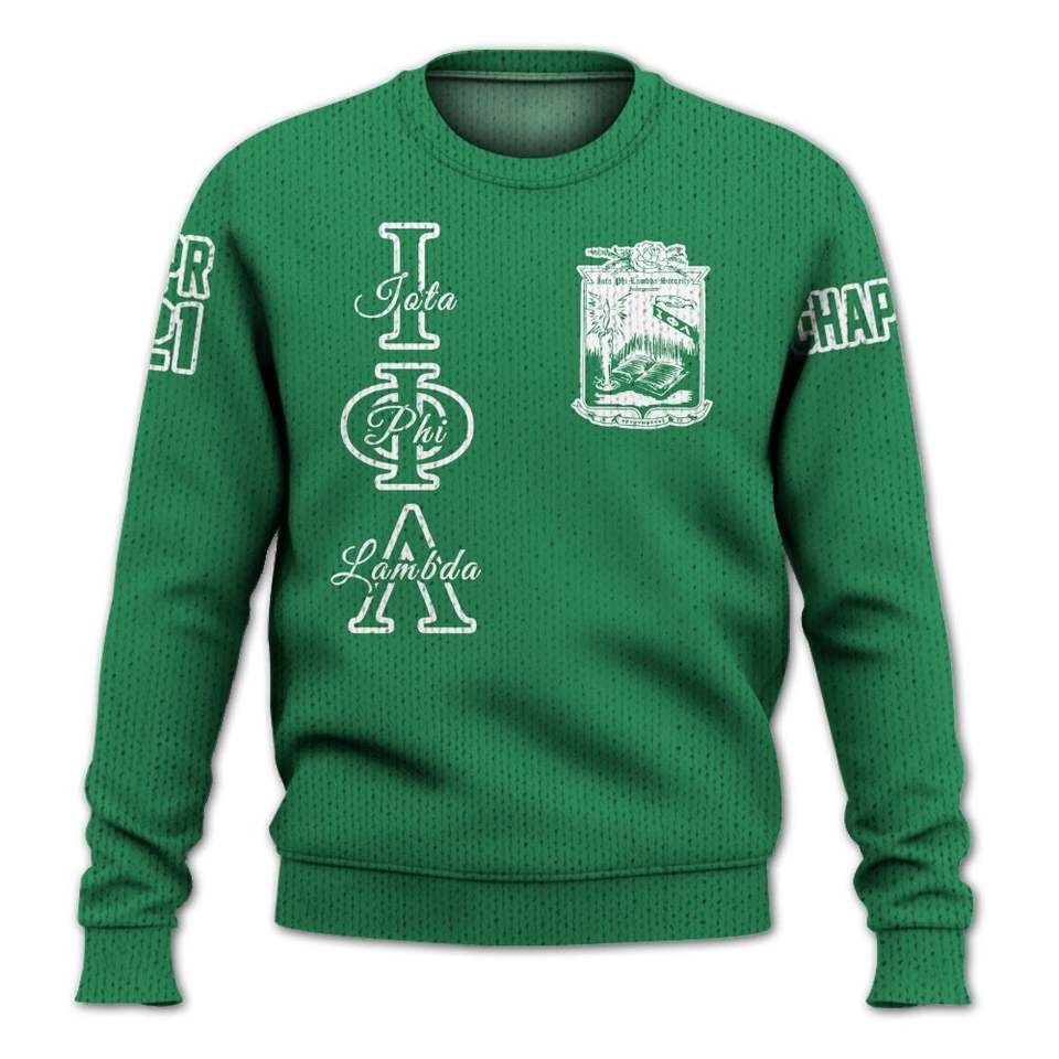 Iota Phi Lambda Custom Personalized Emerald Green Varsity Jacket Iota Phi Lambda Sorority Knitted Sweater