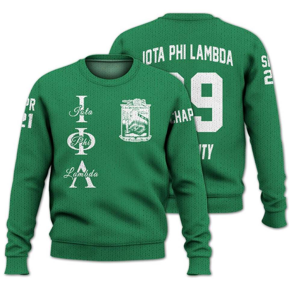 Iota Phi Lambda Custom Personalized Emerald Green Varsity Jacket Iota Phi Lambda Sorority Knitted Sweater