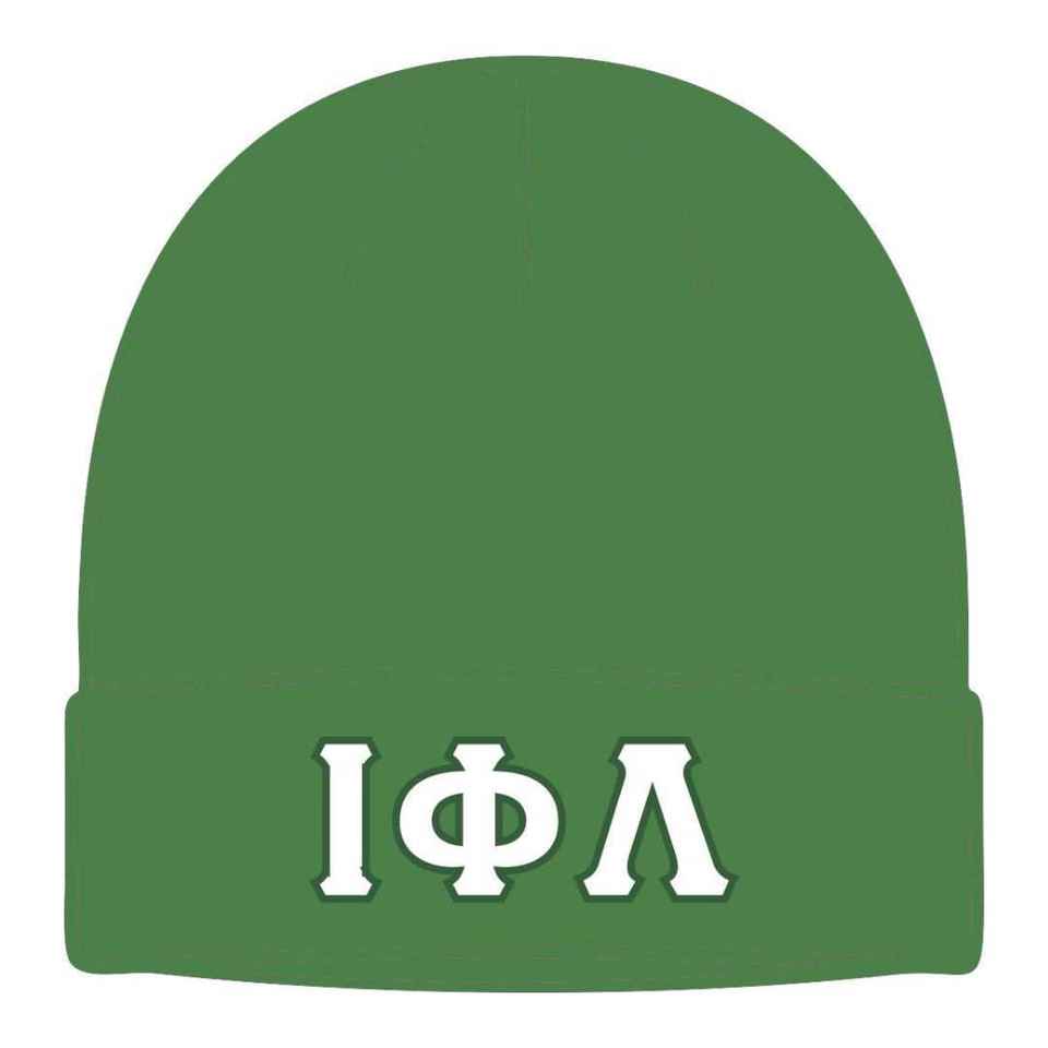 Iota Phi Lambda Sorority Emerald Green Beanie Greek Letter Apparel Womens Winter Knit Hat Casual Warm Headwear Top